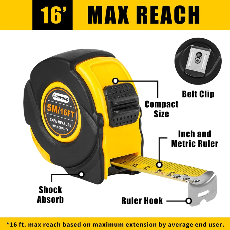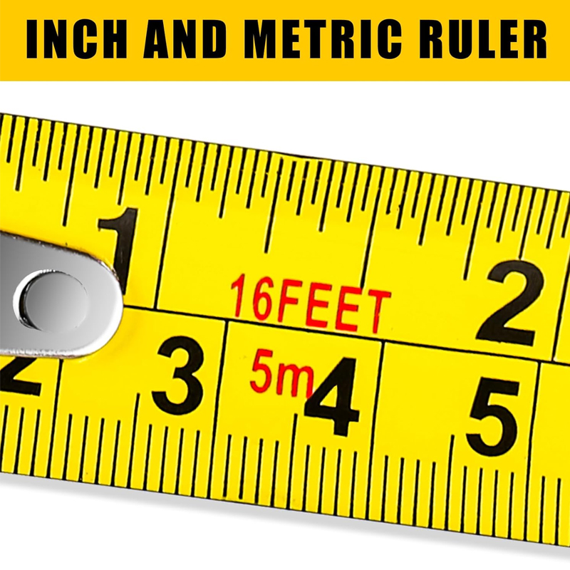 Cinta métrica retráctil de 5 m (16 pies) para todas sus necesidades: Perfecta tanto para uso personal como profesional, esta cinta métrica ofrece versatilidad y comodidad para una amplia gama de tareas de medición.