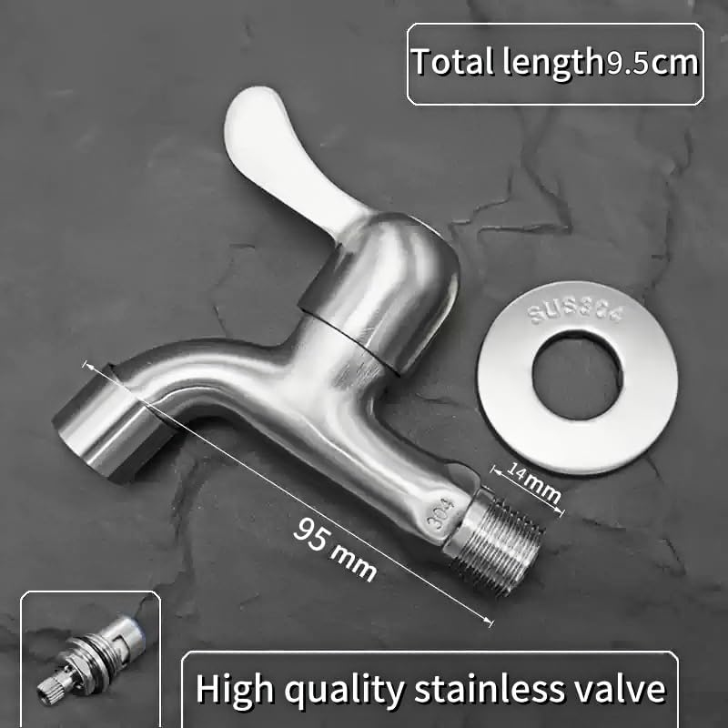 Anticorrosivo y antioxidante: Este grifo para lavadora está fabricado en acero inoxidable SUS304, un material apto para uso alimentario, de larga duración y rendimiento confiable.